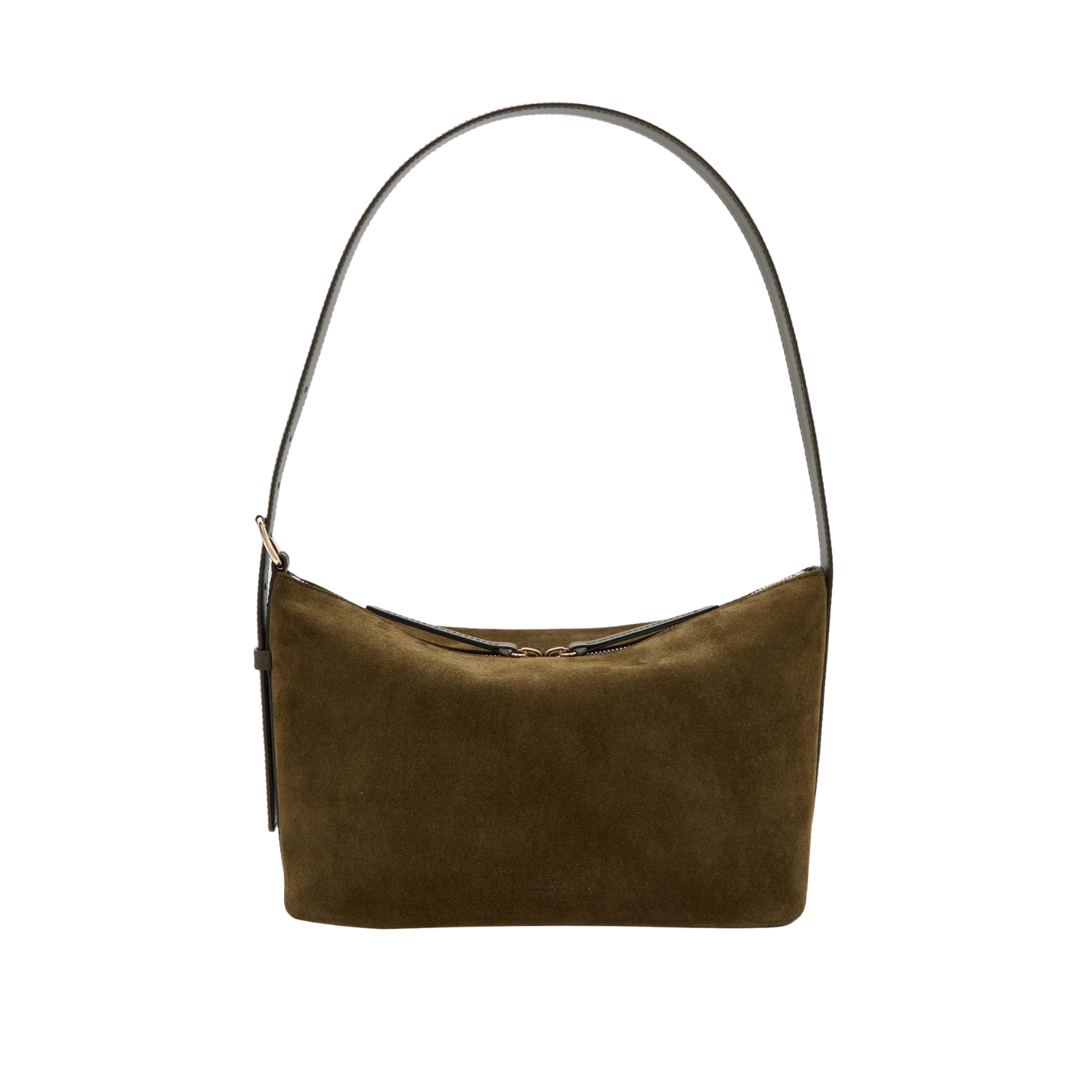 This shoulder bag is designed with a spacious silhouette crafted from smooth suede, two leather zip pulls, an inner slip pocket, and an adjustable leather shoulder strap for a sophisticated look.