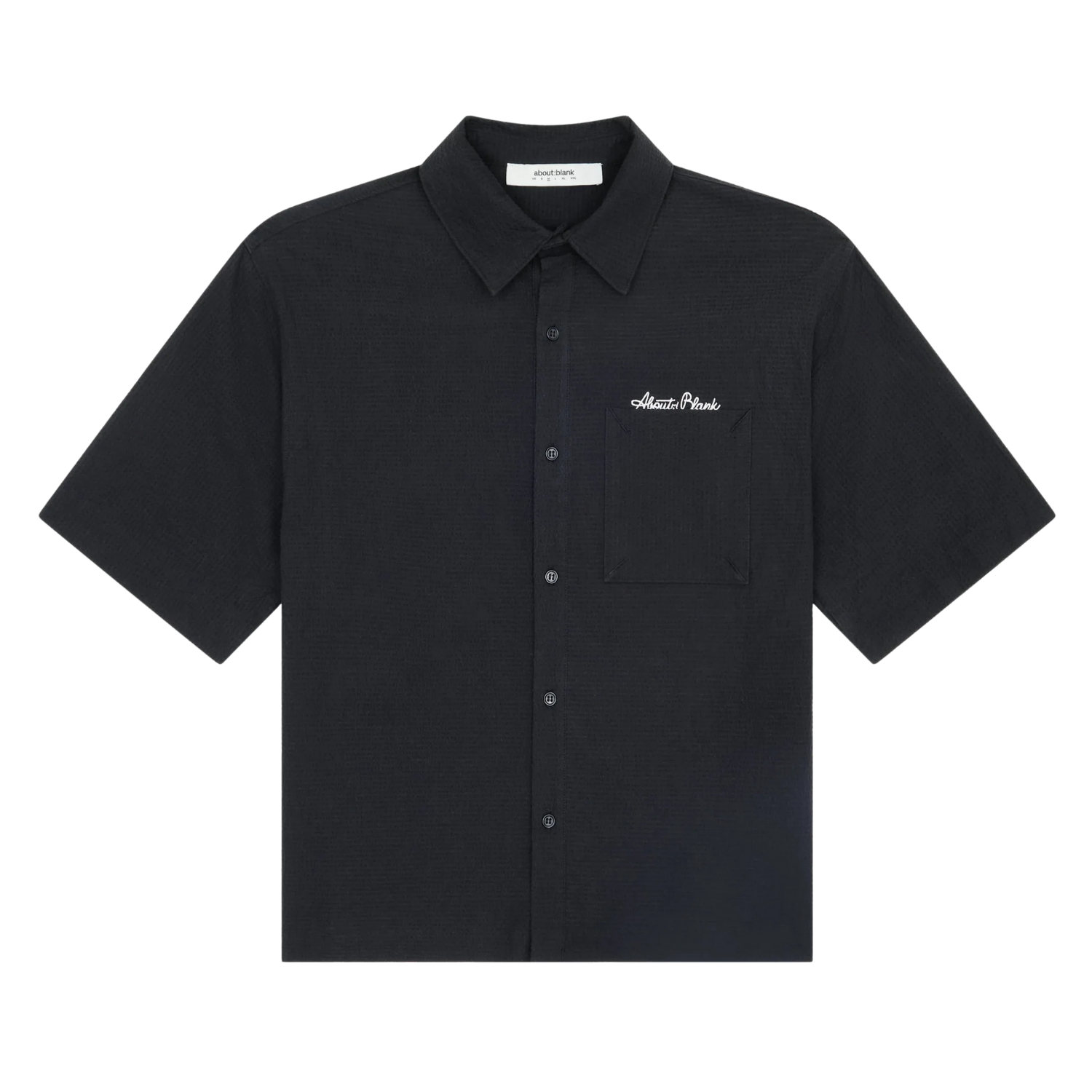 The seersucker shirt is made from lightweight textured shirting, selected for its soft drape and breathable feel. Designed with a square collar, French seam construction, and straight hem, the fit is relaxed and cropped for an easy summer silhouette.