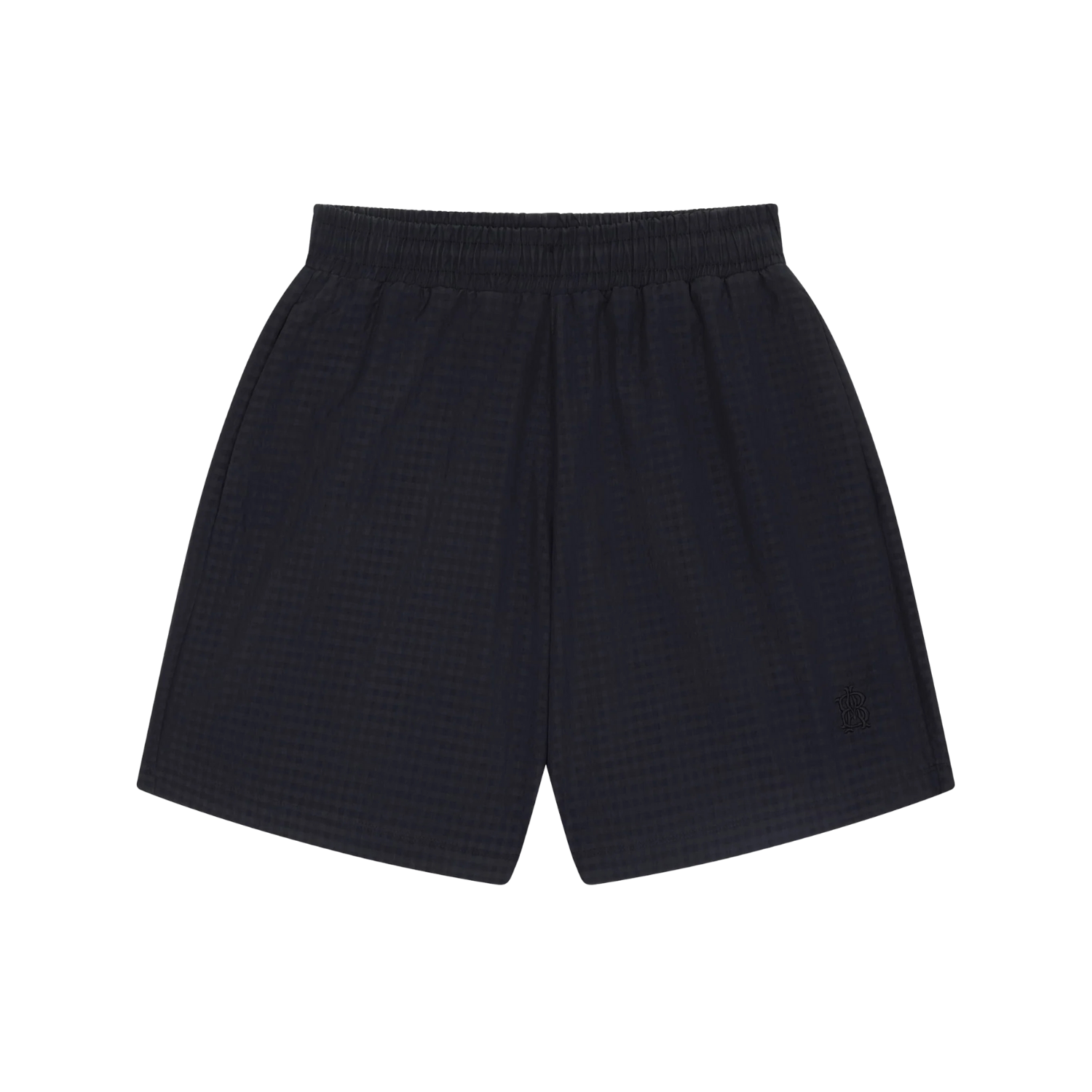 These seersucker-textured swim shorts take the brand’s contemporary minimalism poolside, detailed with tonal satin-stitch embroidery for a clean, pared-back look.