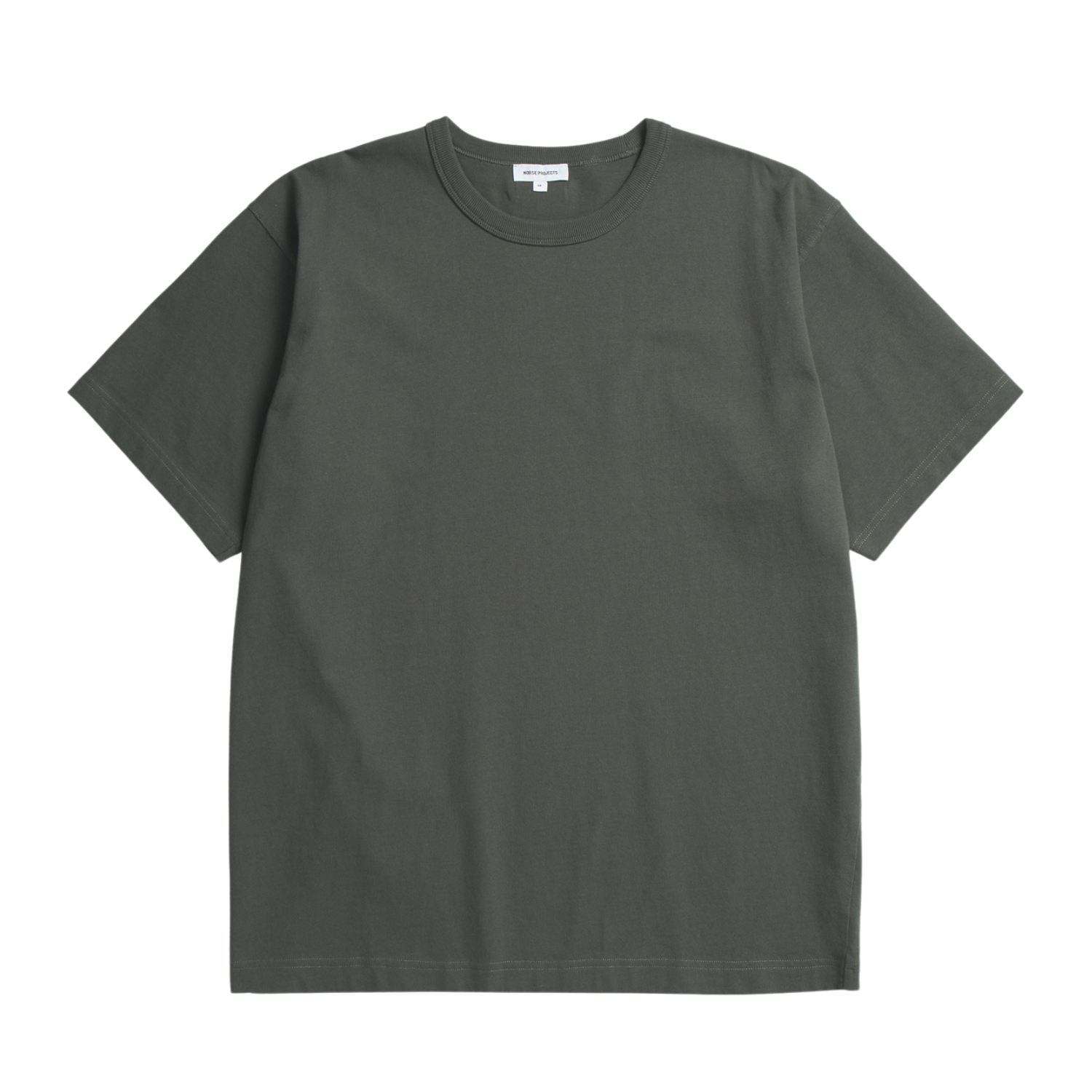 A loose fitting t-shirt cut from an organic heavyweight cotton jersey. It features ribbed binding at the neck and twin needle stitching details throughout. Finished with a branded hang loop at the back neck.