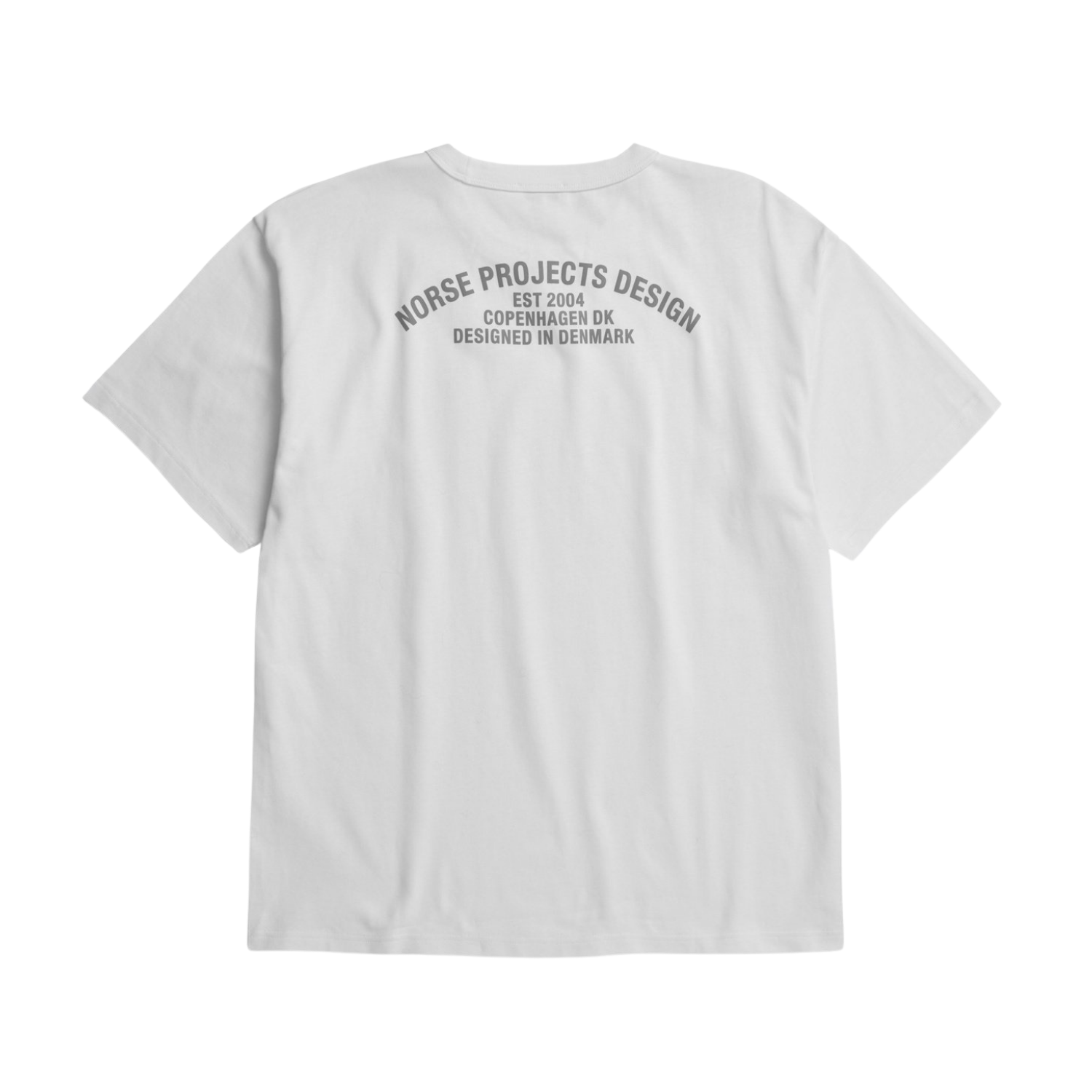 A loose fitting t-shirt cut from an organic heavyweight cotton jersey. It features a screen printed artwork on the back, ribbed binding at the neck, and twin needle stitching details throughout.