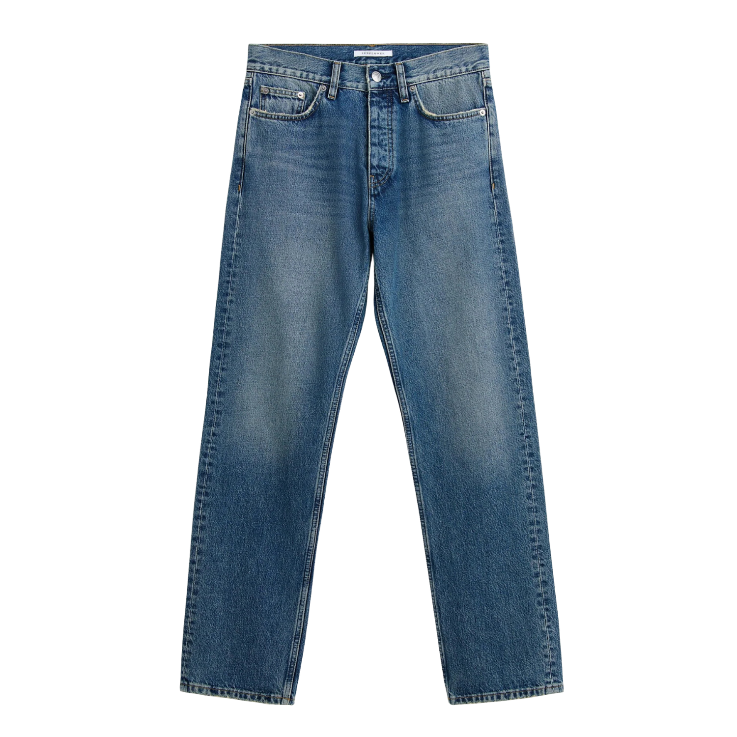 Introducing Sunflower Standard Dark Blue Washed. These regular fit jeans is made from traditional 3x1 twill indigo denim for a classic yet stylish look. Lightly washed for a subtle effect, and finished with Sunflower metal trim for added detail. Perfect for creating a casual yet stylish look. Standard fit in a traditional 3/1 twill indigo denim.