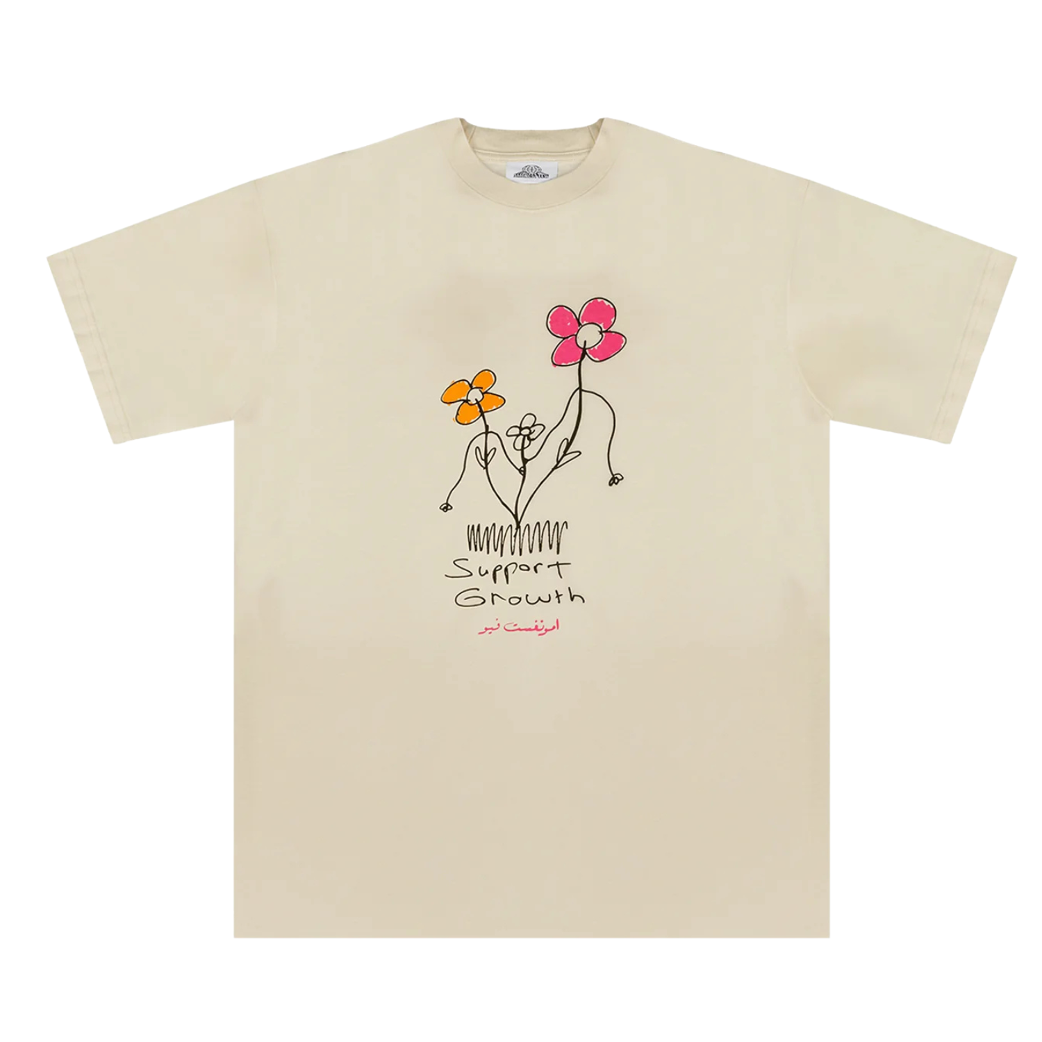 The Tall Poppy T-Shirt is made from 220 GSM cotton with a regular fit. It features a hand-drawn graphic and a screen print to support growth.