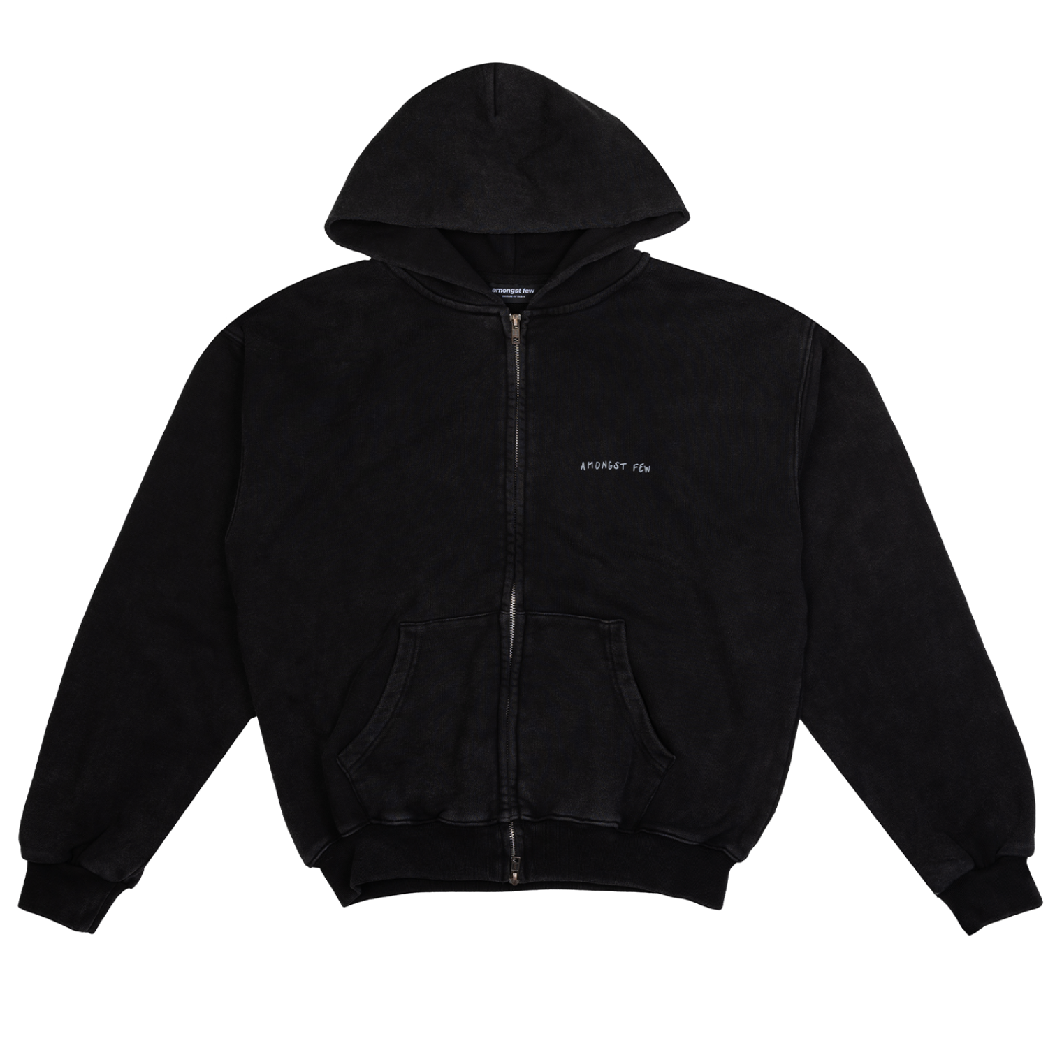 The AMONGST FEW ‘Toddler Text’ zip Hoodie is made from 100% Premium loop back cotton. This heavy weight hooded sweat also features a double zipper, two hand warmer pockets, wash effect and finished off with ribbed collar, cuffs, and hem.