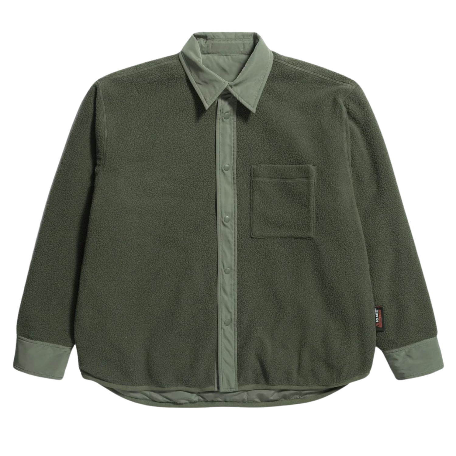 This green reversible fleece overshirt features soft fleece on one side and durable nylon on the other, allowing you to choose the perfect fabric for any situation. It is perfect for layering and can be worn in a variety of ways, making it a must-have for staying warm and comfortable all season long.