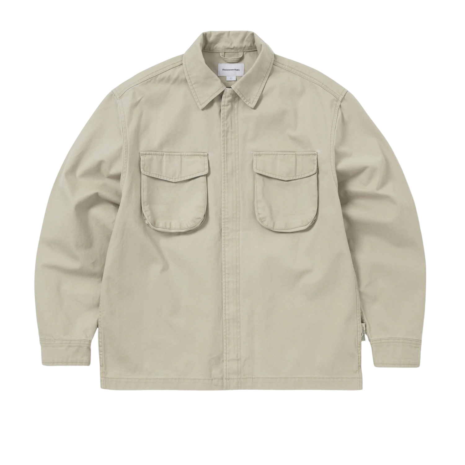 A YKK #5 metal zip closure provides a modern utilitarian edge, while hidden snap-button cuffs and front flap patch pockets with hidden snaps keep the silhouette clean and functional. Finished with a flag label on the sideseam and an interior design label, this shirt blends durability with understated design.